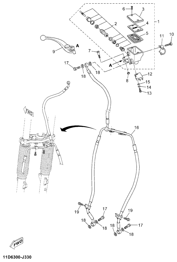 Etujarrun pääsylinteri, XT660Z 2011, XT660, 660 cc, Yamaha -varaosa luettelot
