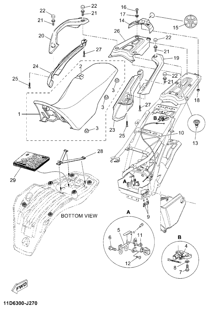 Istuin, XT660Z 2011, XT660, 660 cc, Yamaha -varaosa luettelot
