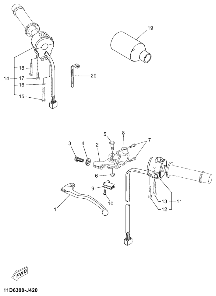 Ohjaustangon katkaisija ja vivut, XT660Z 2011, XT660, 660 cc, Yamaha -varaosa luettelot