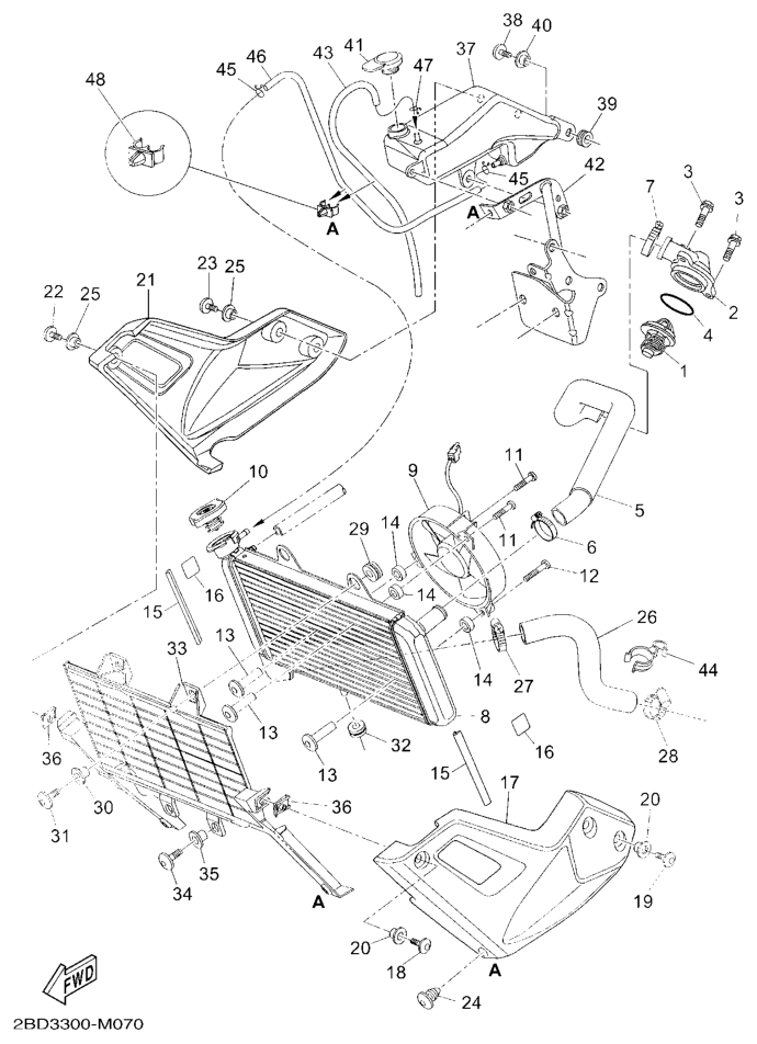 Jäähdytin ja letkut, XT660Z 2015, XT660, 660 cc, Yamaha -varaosa luettelot