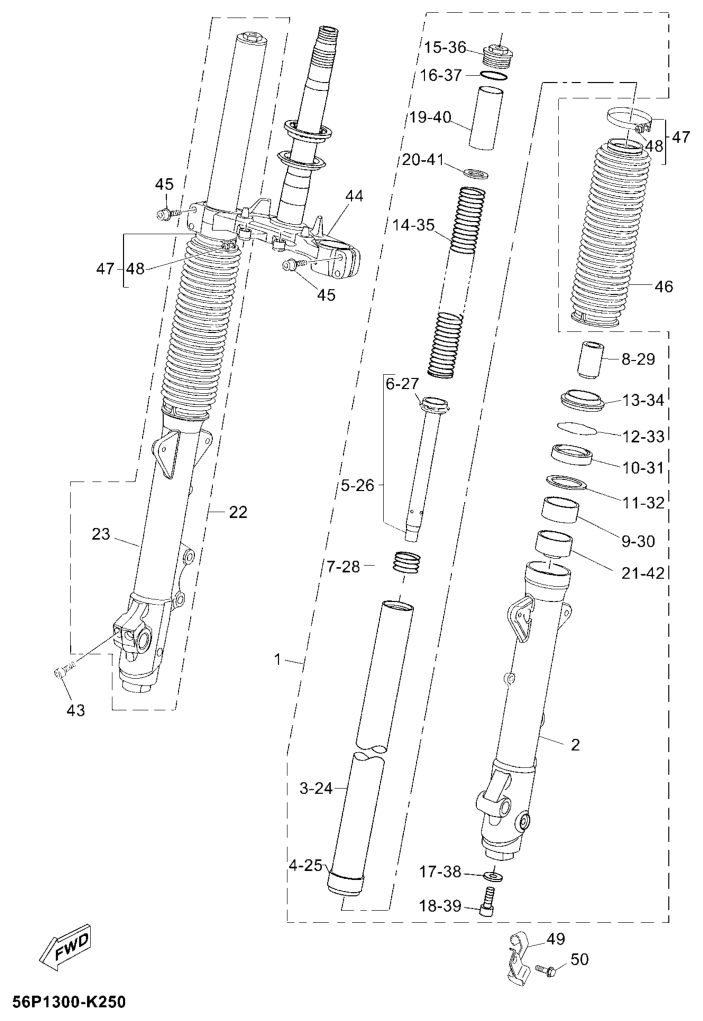 Etuhaarukka, XT660ZA ABS 2011, XT660, 660 cc, Yamaha -varaosa luettelot