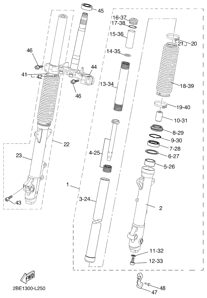 Etuhaarukka, XT660ZA ABS 2012, XT660, 660 cc, Yamaha -varaosa luettelot