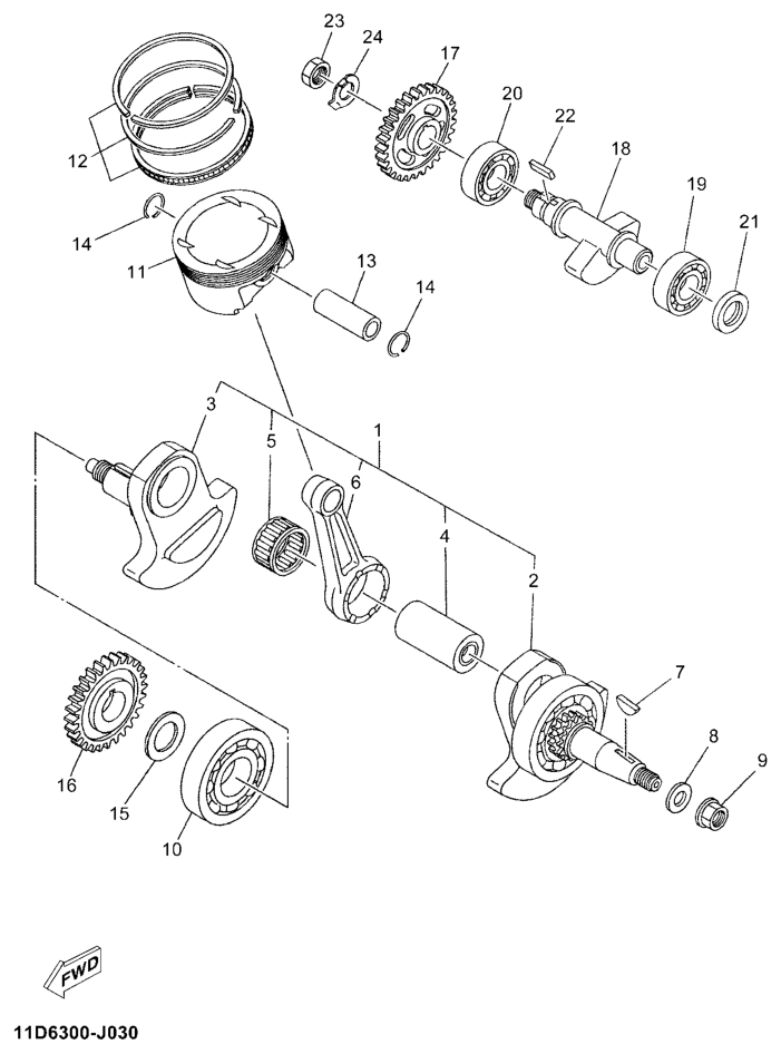 Kampiakseli ja mäntä, XT660ZA ABS 2012, XT660, 660 cc, Yamaha -varaosa luettelot