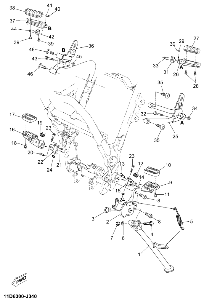 Seisontatuki ja jalkatapit, XT660ZA ABS 2015, XT660, 660 cc, Yamaha -varaosa luettelot
