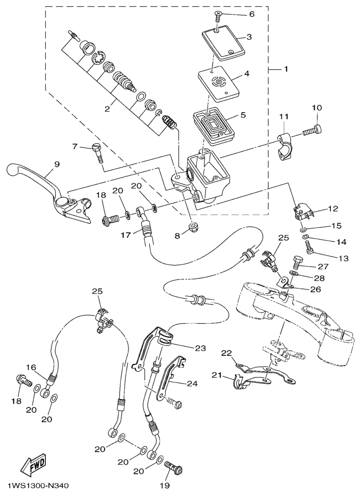 Etujarrun pääsylinteri, MT07 2015, MT-07, 700 cc, Yamaha -varaosa luettelot