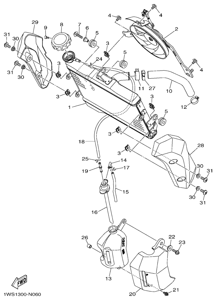 Jäähdytin ja letkut, MT07A 2015, MT-07A, 700 cc, Yamaha -varaosa luettelot