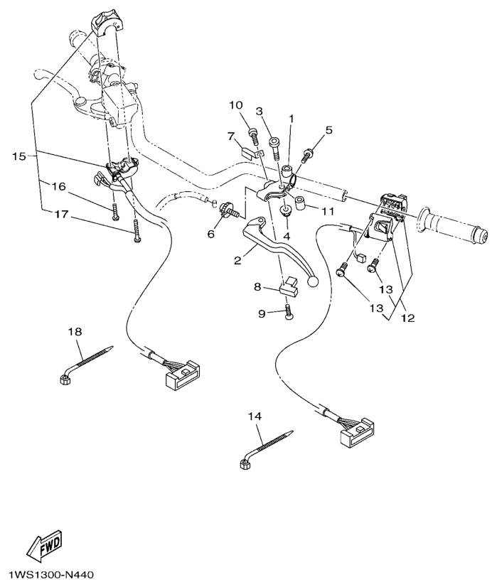 Ohjaustangon katkaisija ja vivut, MT07A 2017, MT-07A, 700 cc, Yamaha -varaosa luettelot