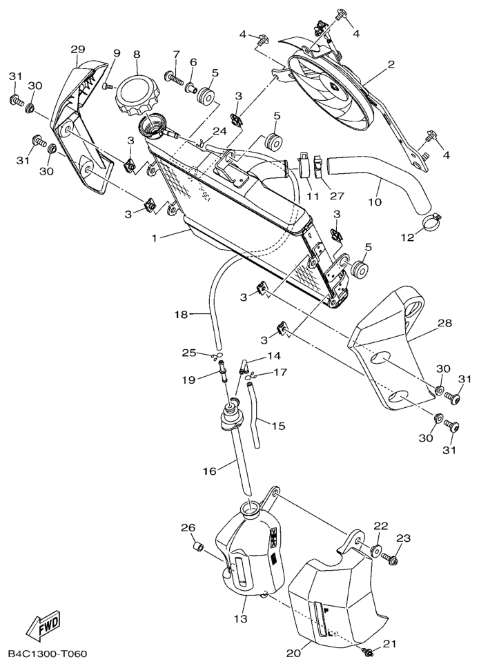 Jäähdytin ja letkut, MT07A 2020, MT-07A, 700 cc, Yamaha -varaosa luettelot