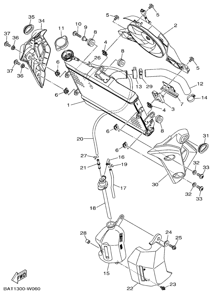 Jäähdytin ja letkut, MT07A 2022, MT-07A, 700 cc, Yamaha -varaosa luettelot