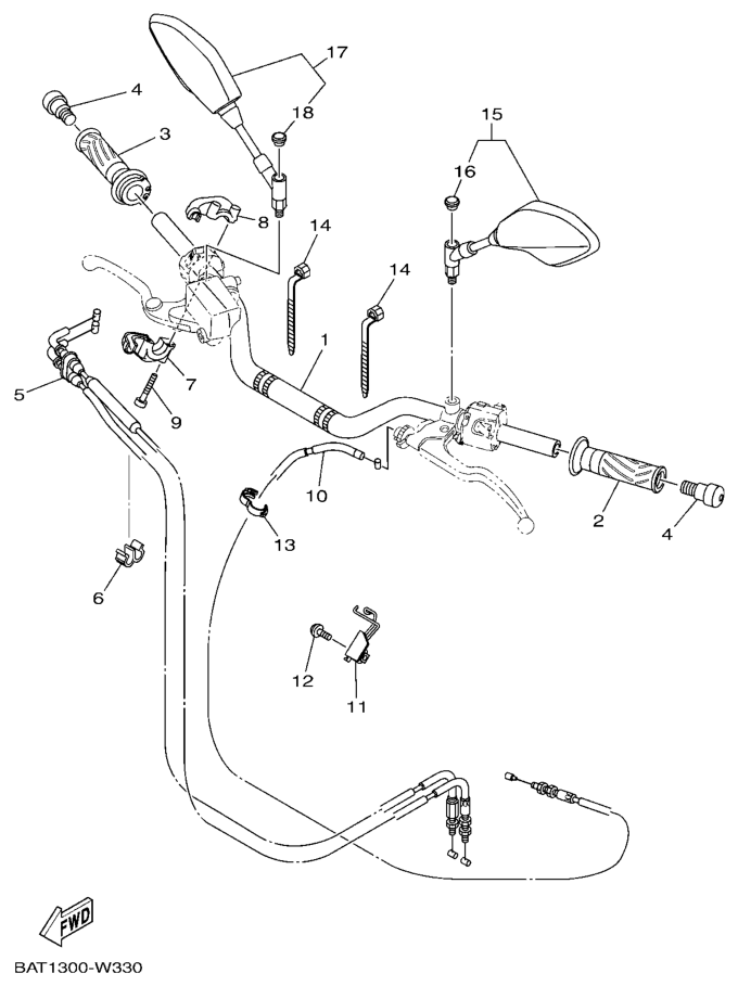 Ohjaustanko ja vaijerit, MT07A 2022, MT-07A, 700 cc, Yamaha -varaosa luettelot