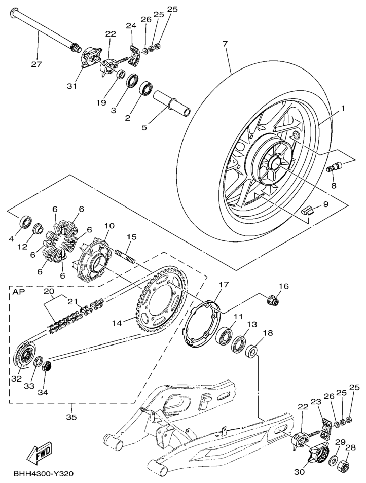 Takapyörä, MT07A 2023, MT-07A, 700 cc, Yamaha -varaosa luettelot