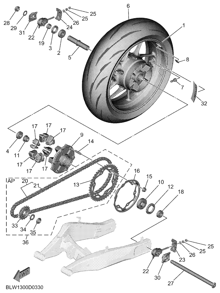 Takapyörä, MT07A 2025, MT-07A, 700 cc, Yamaha -varaosa luettelot