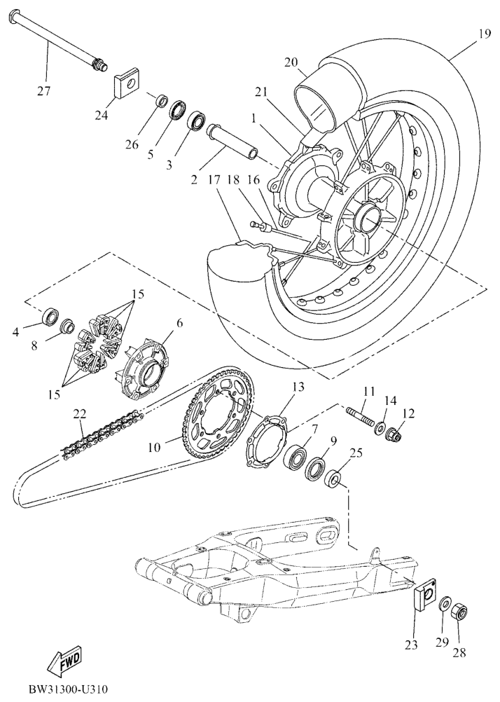 Takapyörä, XTZ690 2020, XTZ690 Ténéré, 700 cc, Yamaha -varaosa luettelot