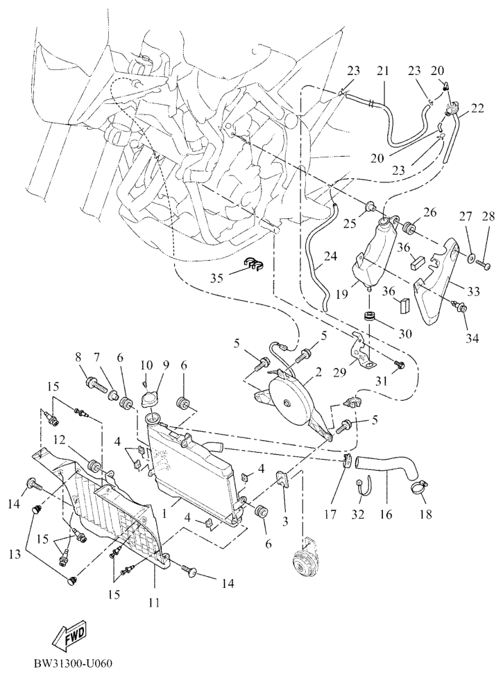 Jäähdytin ja letkut, XTZ690 2022, XTZ690 Ténéré, 700 cc, Yamaha -varaosa luettelot
