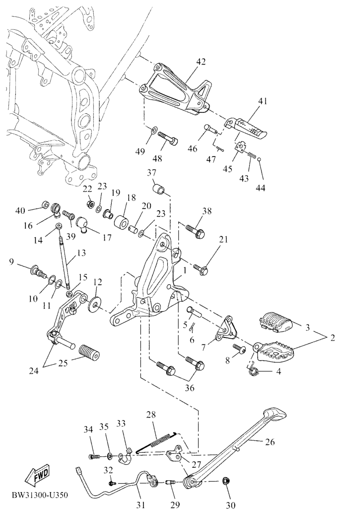 Seisontatuki ja jalkatapit, XTZ690 2022, XTZ690 Ténéré, 700 cc, Yamaha -varaosa luettelot