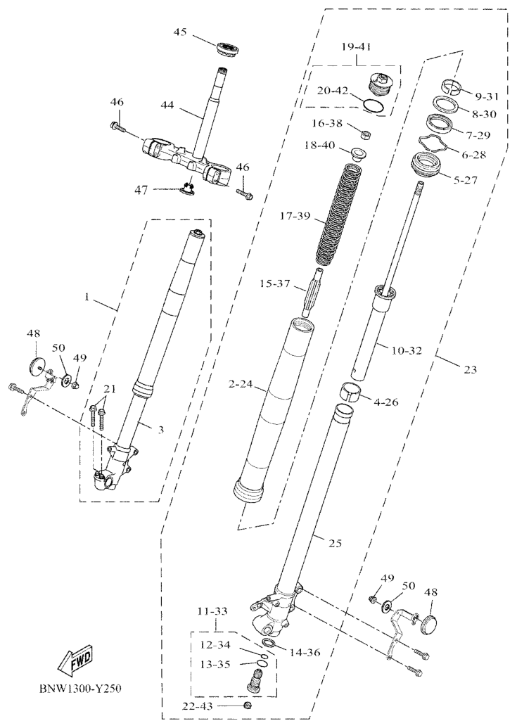 Etuhaarukka, XTZ690 2023, XTZ690 Ténéré, 700 cc, Yamaha -varaosa luettelot
