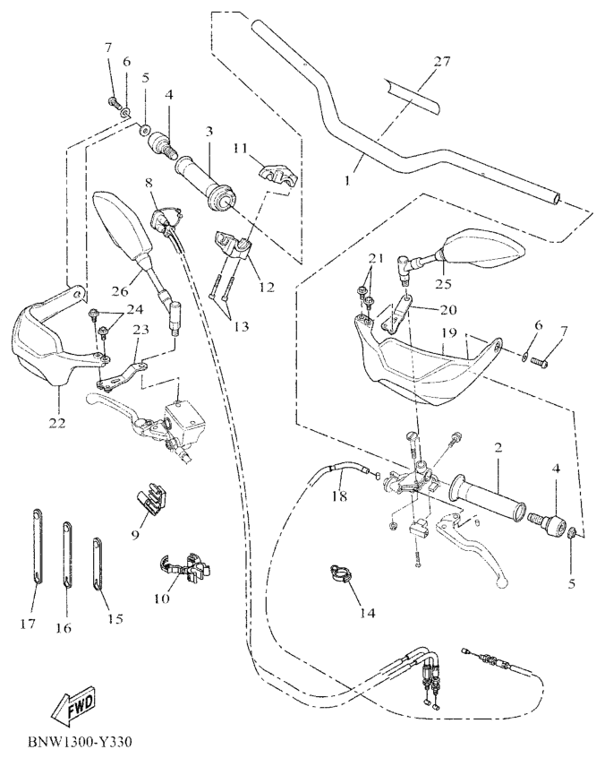Ohjaustanko ja vaijerit, XTZ690 2023, XTZ690 Ténéré, 700 cc, Yamaha -varaosa luettelot