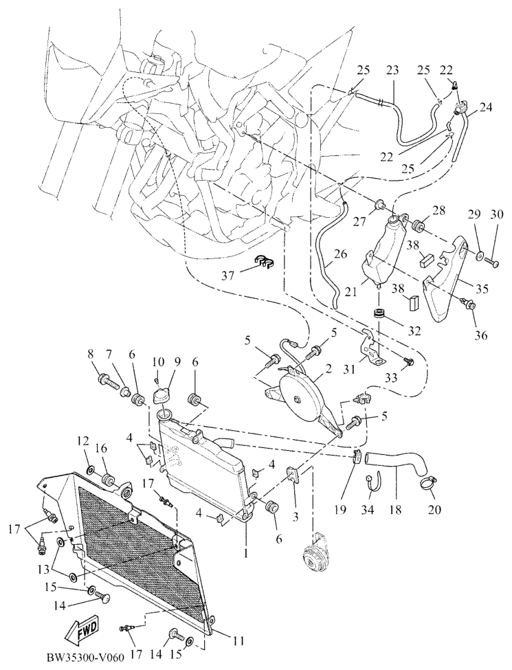 Jäähdytin ja letkut, XTZ690 2024, XTZ690 Ténéré, 700 cc, Yamaha -varaosa luettelot