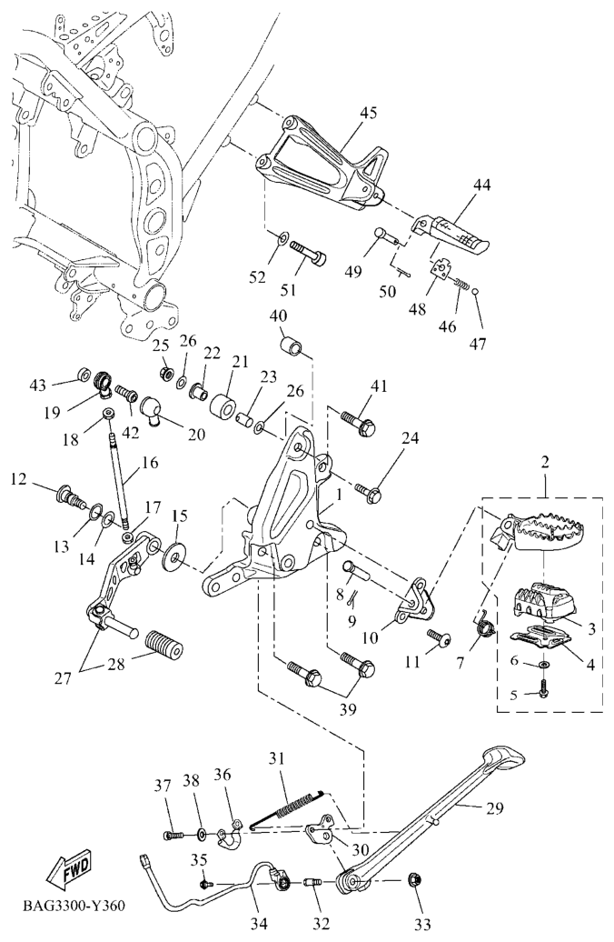 Seisontatuki ja jalkatapit, XTZ690 WORLD RALLY 2024, XTZ690 Ténéré, 700 cc, Yamaha -varaosa luettelot