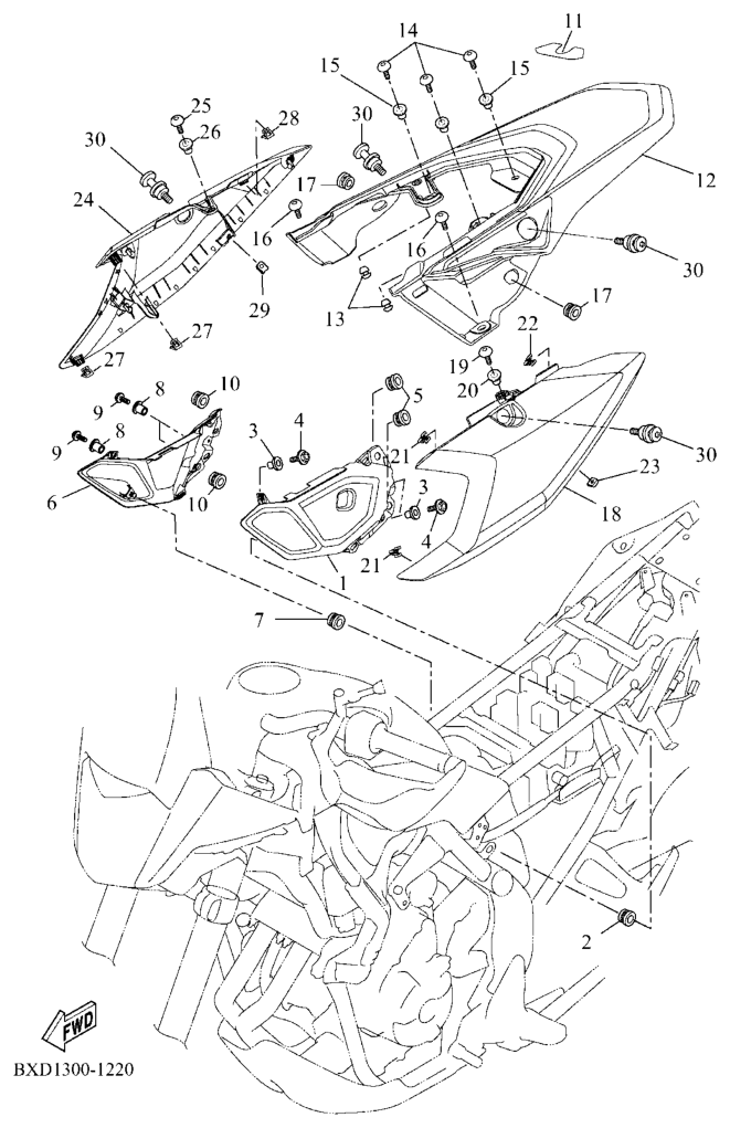 Side cover, XTZ690 WORLD RALLY 2026, XTZ690 Ténéré, 700 cc, Yamaha -varaosa luettelot