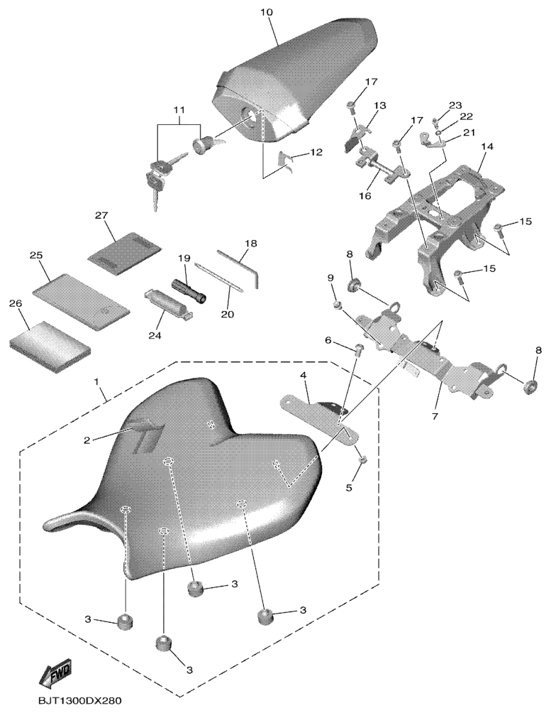 Istuin, YZF-R7 2022, YZF-R7, 700 cc, Yamaha -varaosa luettelot
