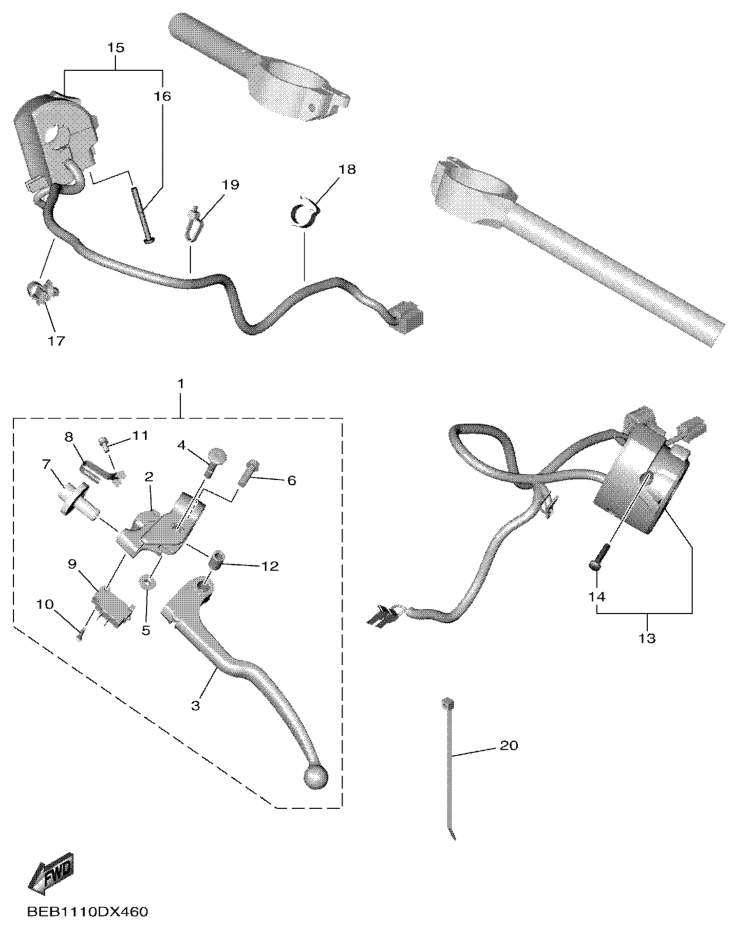 Ohjaustangon katkaisija ja vivut, YZF-R7 35kW 2024, YZF-R7, 700 cc, Yamaha -varaosa luettelot