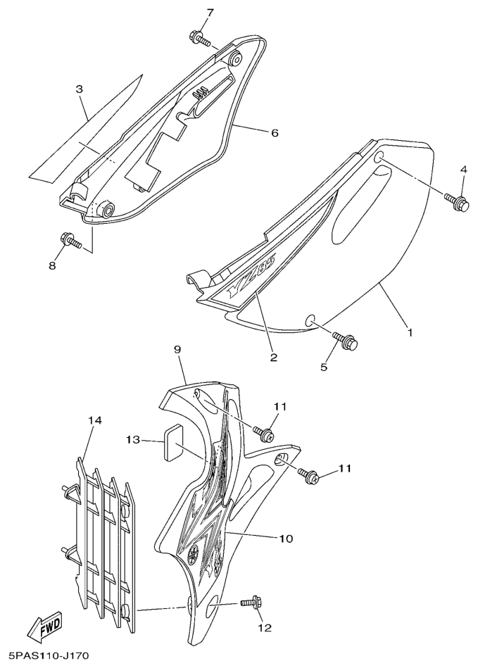 Sivupaneelit, YZ85 2010, YZ85, 85 - 90 cc, Yamaha -varaosa luettelot