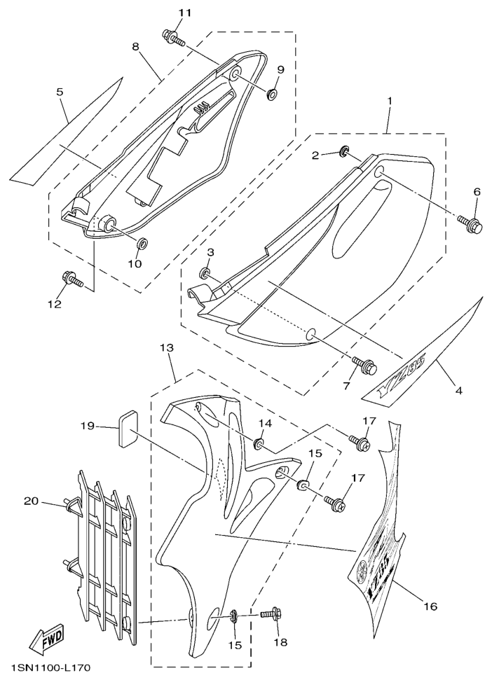 Sivupaneelit, YZ85 2012, YZ85, 85 - 90 cc, Yamaha -varaosa luettelot