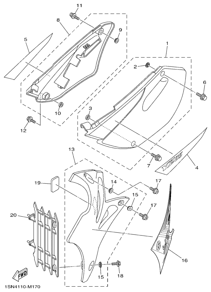 Sivupaneelit, YZ85LW 2013, YZ85, 85 - 90 cc, Yamaha -varaosa luettelot