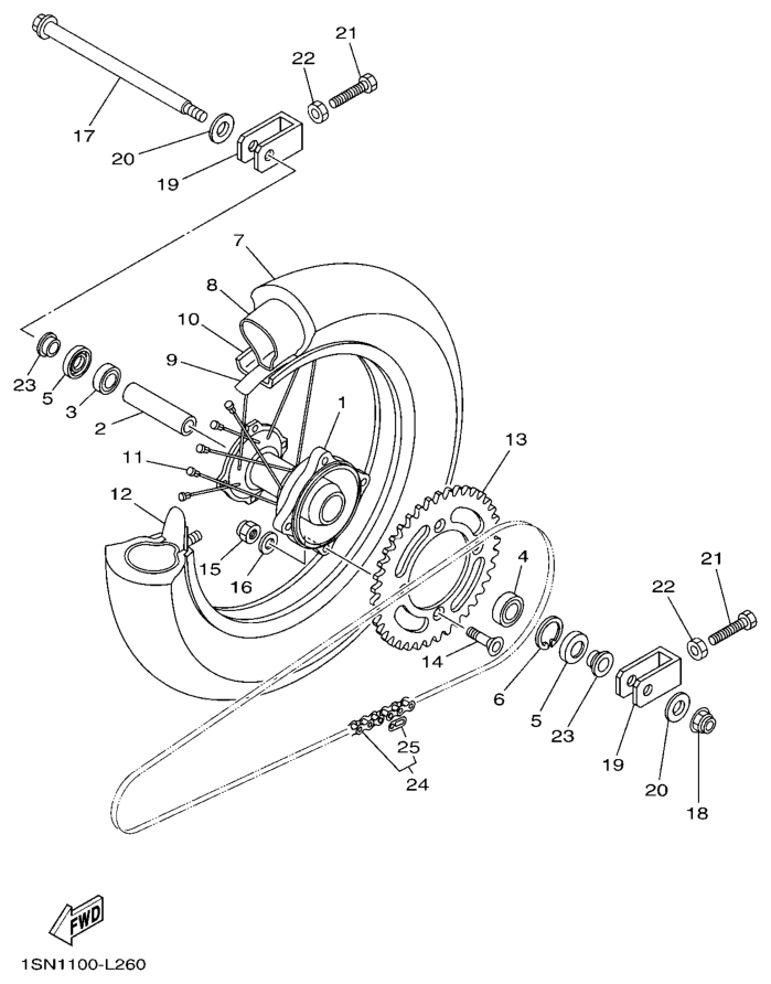 Takapyörä, YZ85LW 2017, YZ85, 85 - 90 cc, Yamaha -varaosa luettelot