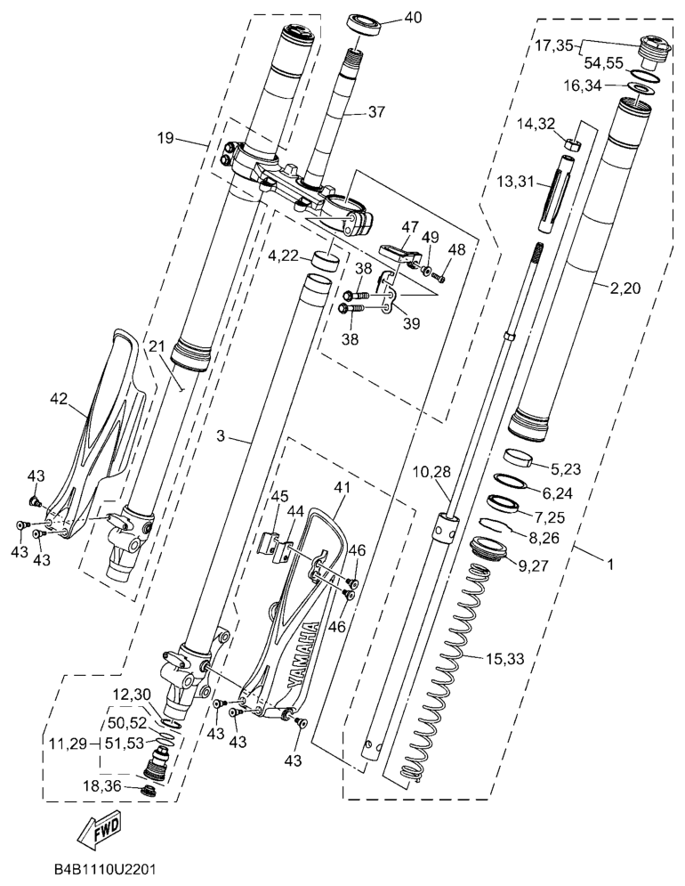 Etuhaarukka, YZ85LW 2020, YZ85, 85 - 90 cc, Yamaha -varaosa luettelot
