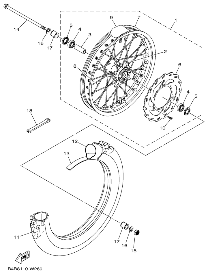 Etupyörä, YZ85LW 2021, YZ85, 85 - 90 cc, Yamaha -varaosa luettelot