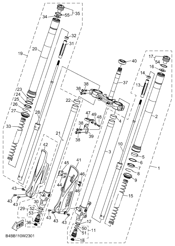 Etuhaarukka, YZ85LW 2022, YZ85, 85 - 90 cc, Yamaha -varaosa luettelot