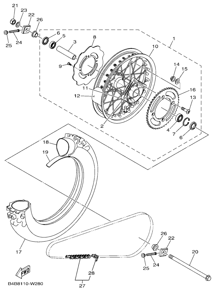 Takapyörä, YZ85LW 2023, YZ85, 85 - 90 cc, Yamaha -varaosa luettelot