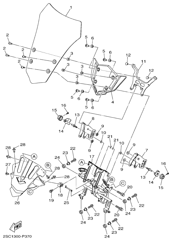 Tuulilasi, MT09A TRACER 2015, MT09 TRACER, 900 cc, Yamaha -varaosa luettelot