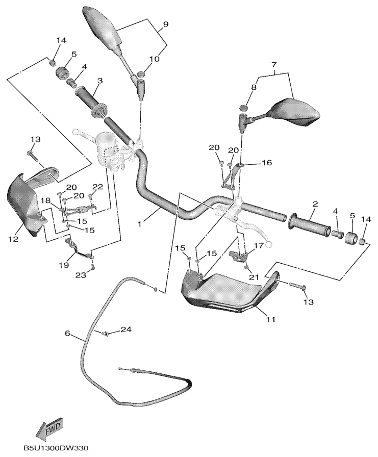 Ohjaustanko ja vaijerit, MT09A TRACER 2021, MT09 TRACER, 900 cc, Yamaha -varaosa luettelot