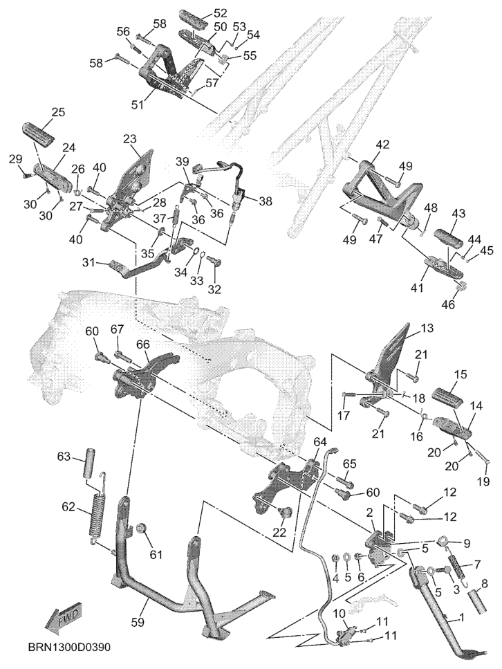 Seisontatuki ja jalkatapit, MT09A TRACER 2025, MT09 TRACER, 900 cc, Yamaha -varaosa luettelot