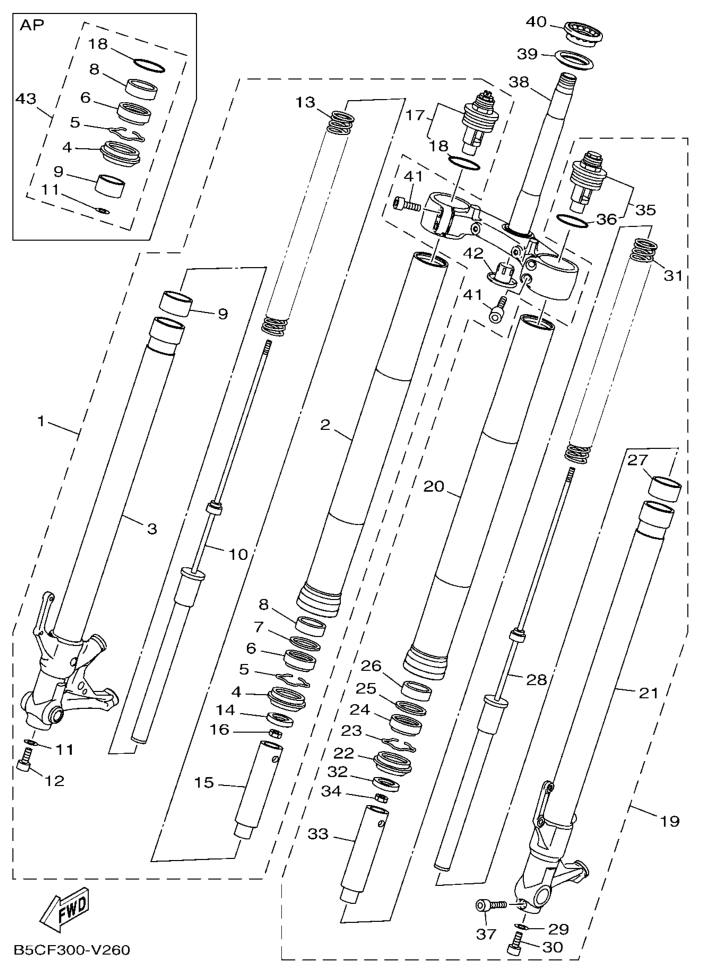 Etuhaarukka, MT09A TRACER GT 2020, MT09 TRACER, 900 cc, Yamaha -varaosa luettelot