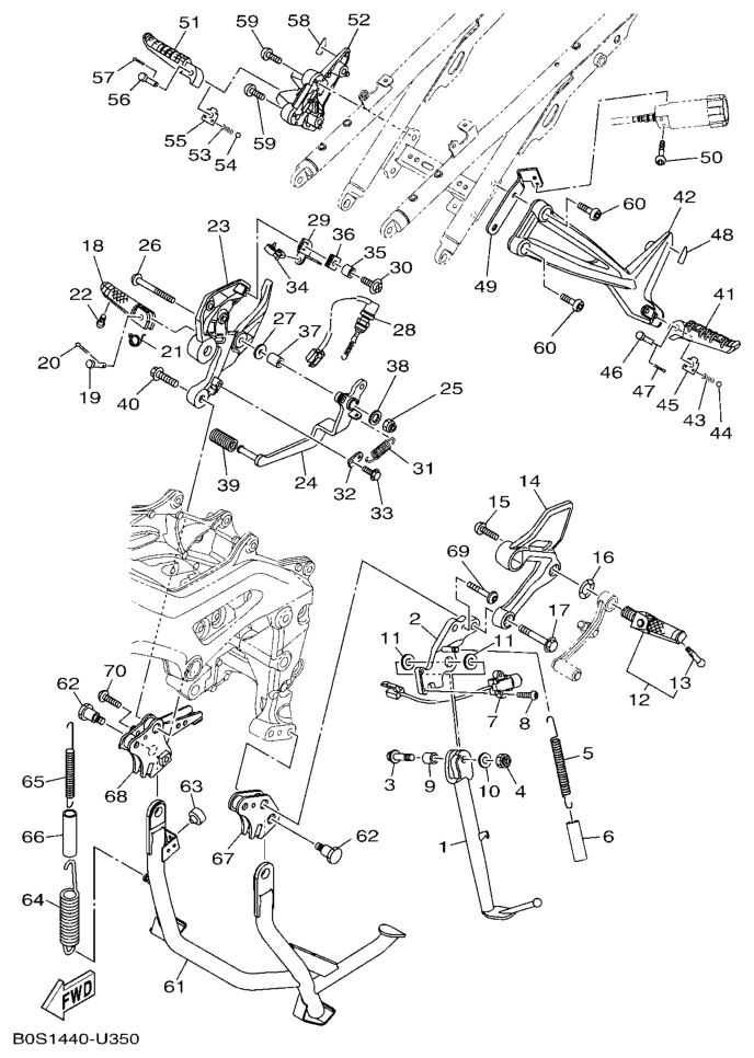 Seisontatuki ja jalkatapit, MT09A TRACER GT 2020, MT09 TRACER, 900 cc, Yamaha -varaosa luettelot