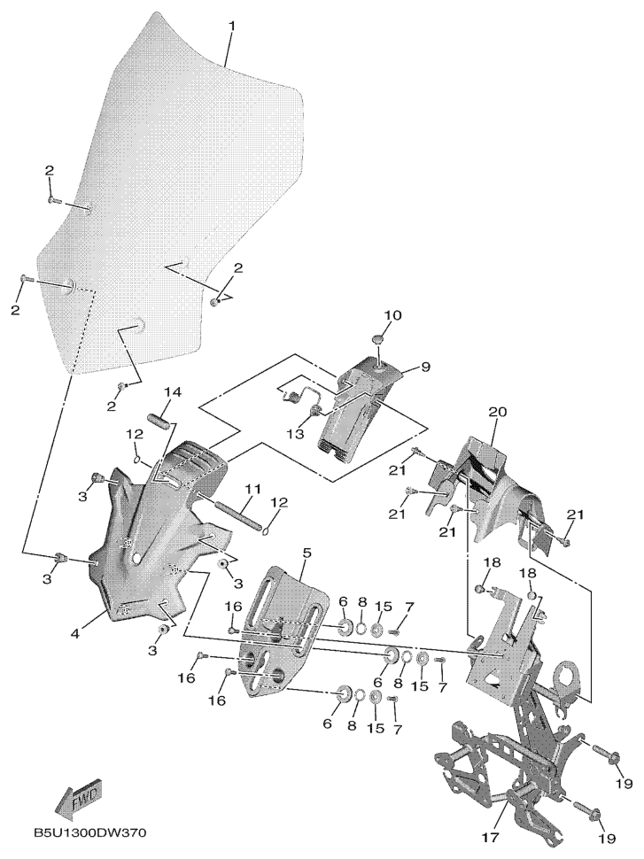 Tuulilasi, MT09A TRACER GT 2021, MT09 TRACER, 900 cc, Yamaha -varaosa luettelot
