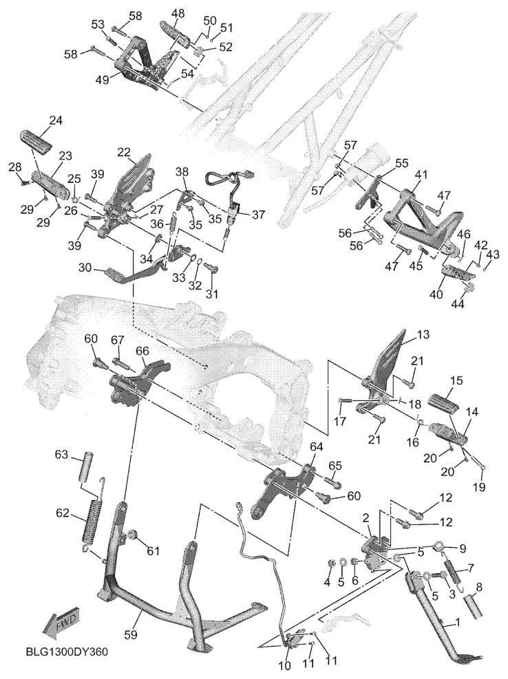 Seisontatuki ja jalkatapit, MT09A TRACER GT+ 2024, MT09 TRACER, 900 cc, Yamaha -varaosa luettelot