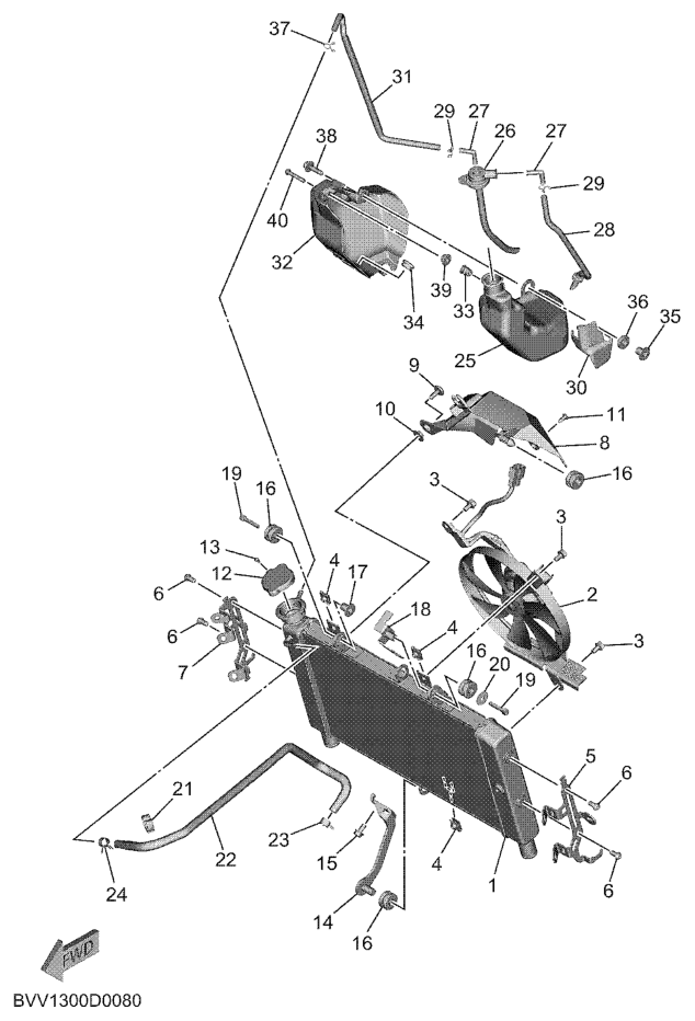 Jäähdytin ja letkut, MT09A TRACER GT Y-AMT 2025, MT09 TRACER, 900 cc, Yamaha -varaosa luettelot
