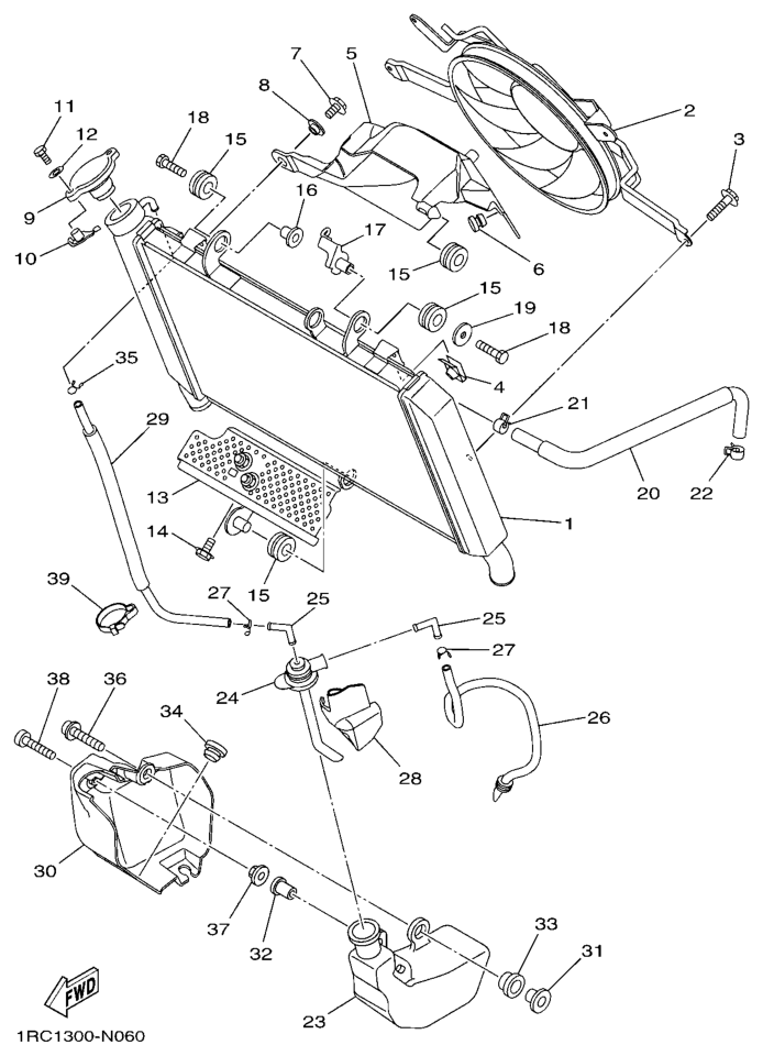Jäähdytin ja letkut, MT09 2015, MT09, 900 cc, Yamaha -varaosa luettelot