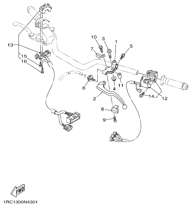 Ohjaustangon katkaisija ja vivut, MT09A 2014, MT09, 900 cc, Yamaha -varaosa luettelot