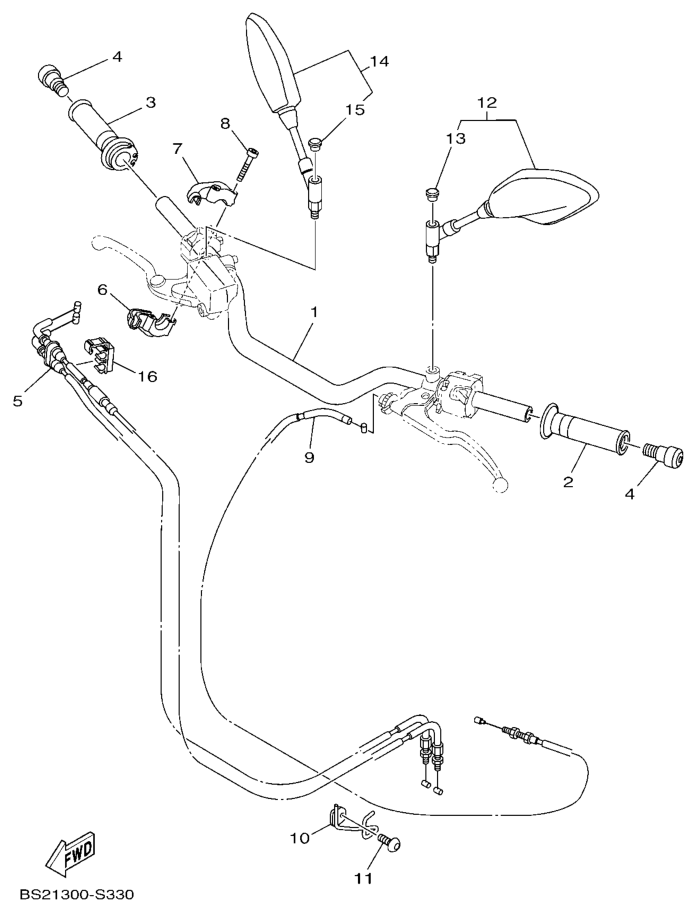 Ohjaustanko ja vaijerit, MT09A 2017, MT09, 900 cc, Yamaha -varaosa luettelot