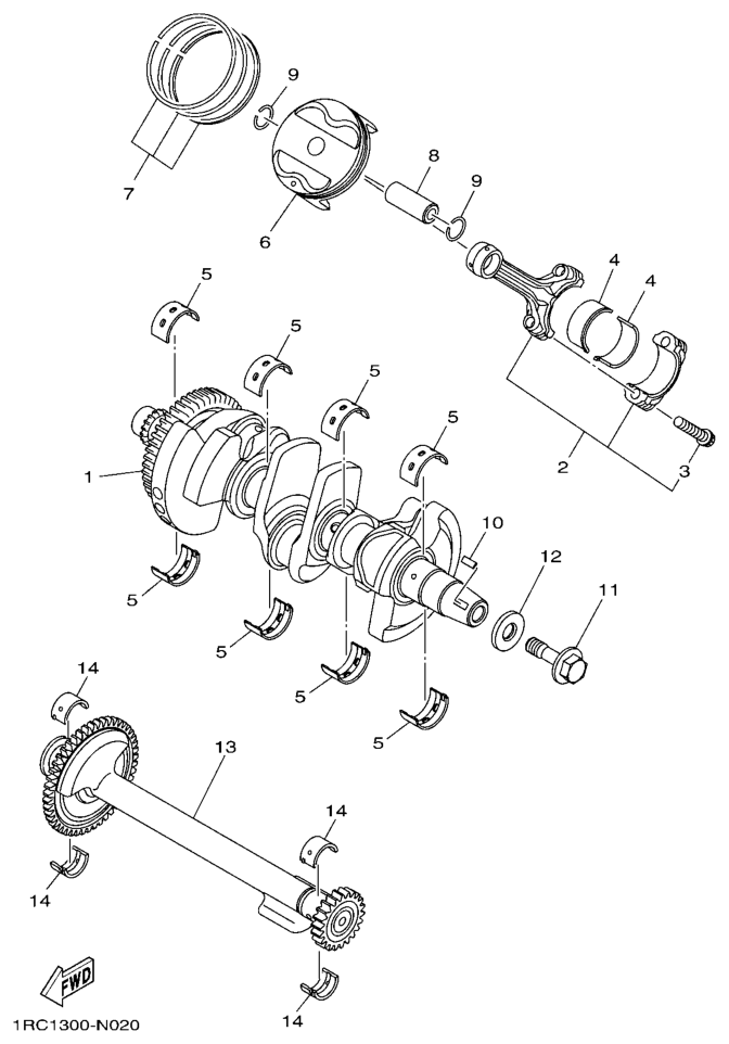 Kampiakseli ja mäntä, MT09A 2018, MT09, 900 cc, Yamaha -varaosa luettelot
