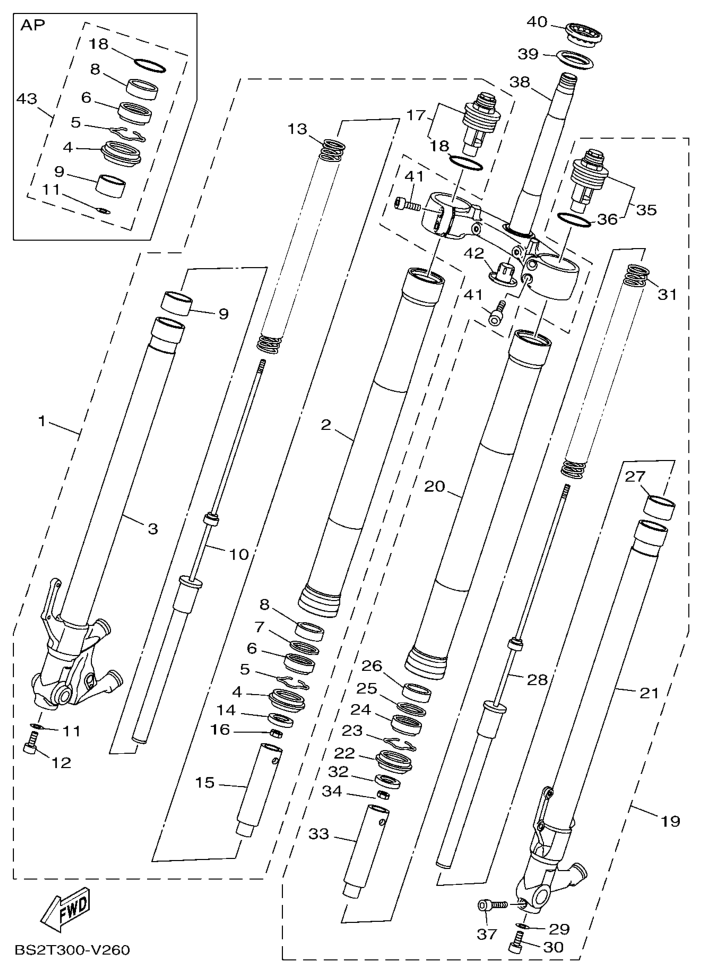Etuhaarukka, MT09A 2020, MT09, 900 cc, Yamaha -varaosa luettelot