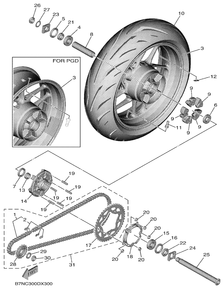 Takapyörä, MT09A 2022, MT09, 900 cc, Yamaha -varaosa luettelot