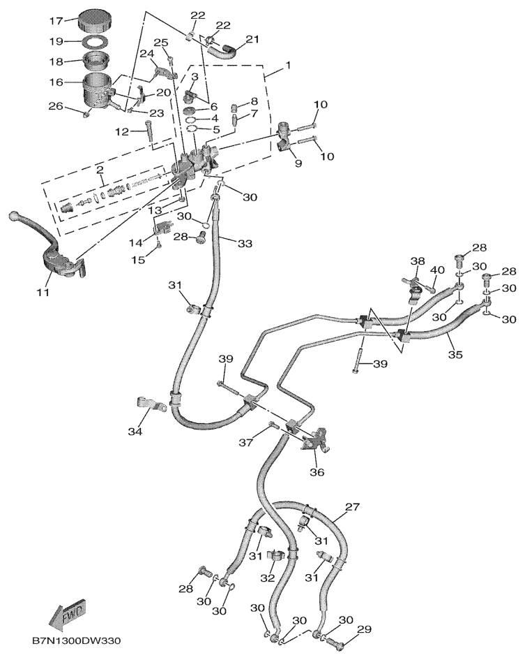 Etujarrun pääsylinteri, MT09A 2023, MT09, 900 cc, Yamaha -varaosa luettelot