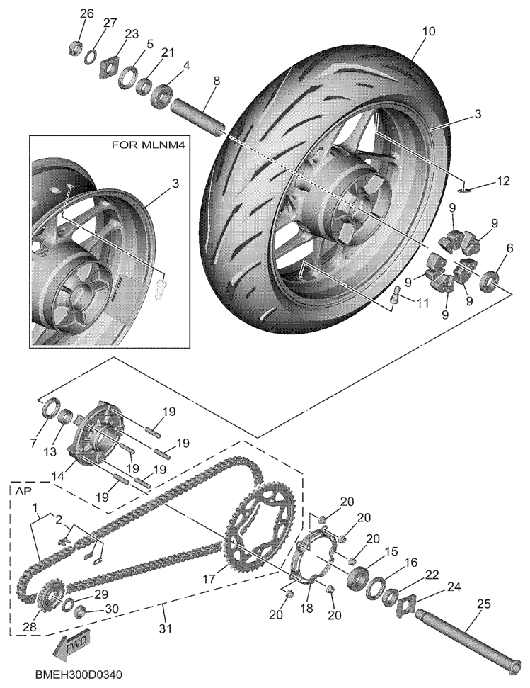 Takapyörä, MT09A 2025, MT09, 900 cc, Yamaha -varaosa luettelot